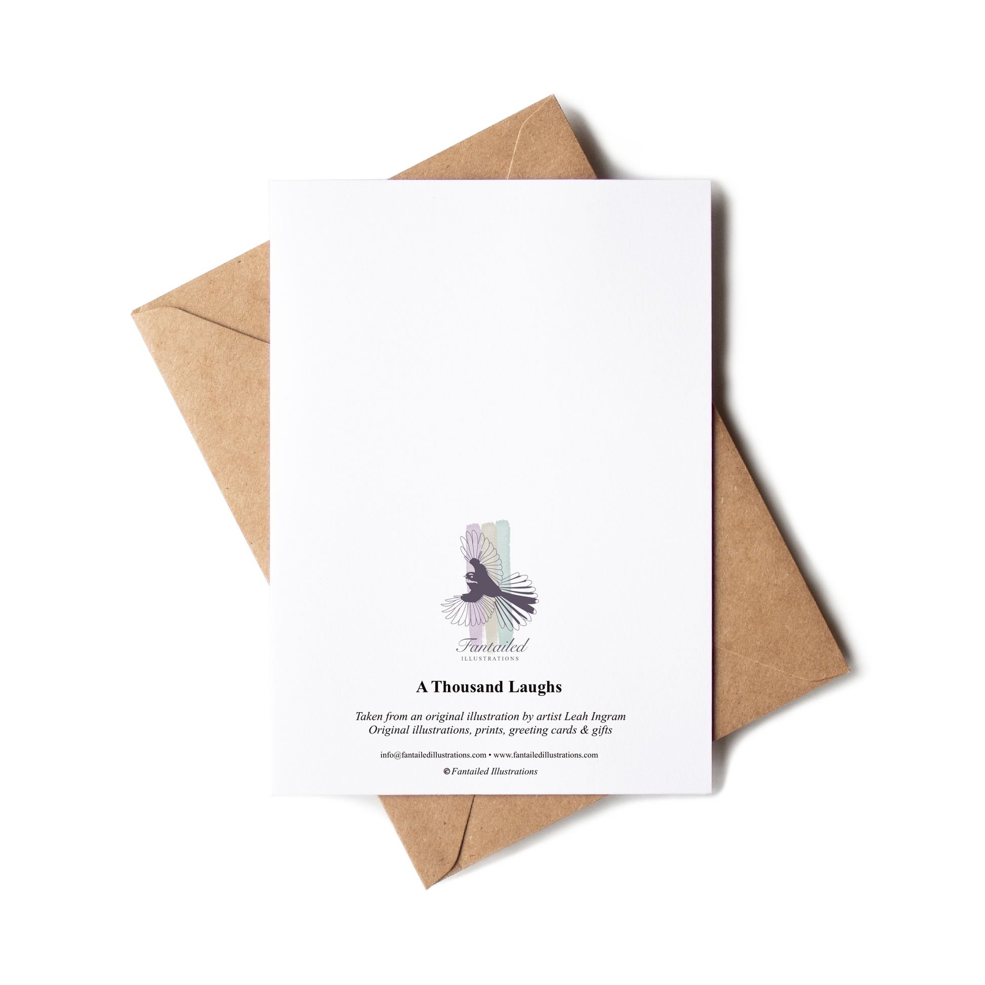 Printed on luxurious matte cardstock and includes a kraft envelope. The interior of the card is blank, ready for your message.