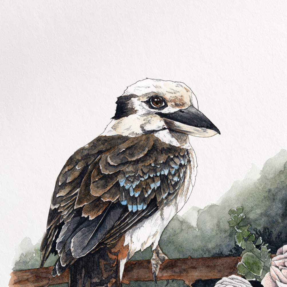A Thousand Laughs captures the joyful spirit of Australia's most iconic bird. This enchanting print features a kookaburra perched amongst vibrant native flowers, celebrating the wild beauty and infectious energy of the Australian landscape. Perfect for bringing warmth and character to any space, this artwork reminds us to embrace life's lighter moments and find happiness in nature's simple pleasures.