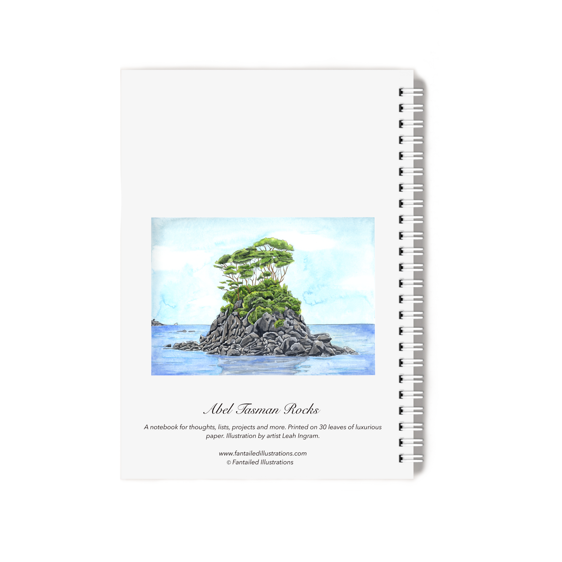 A 30-page notebook featuring the "Abel Tasman Rocks" illustration. Customise by choosing either plain lined or illustrated and personalising the cover.