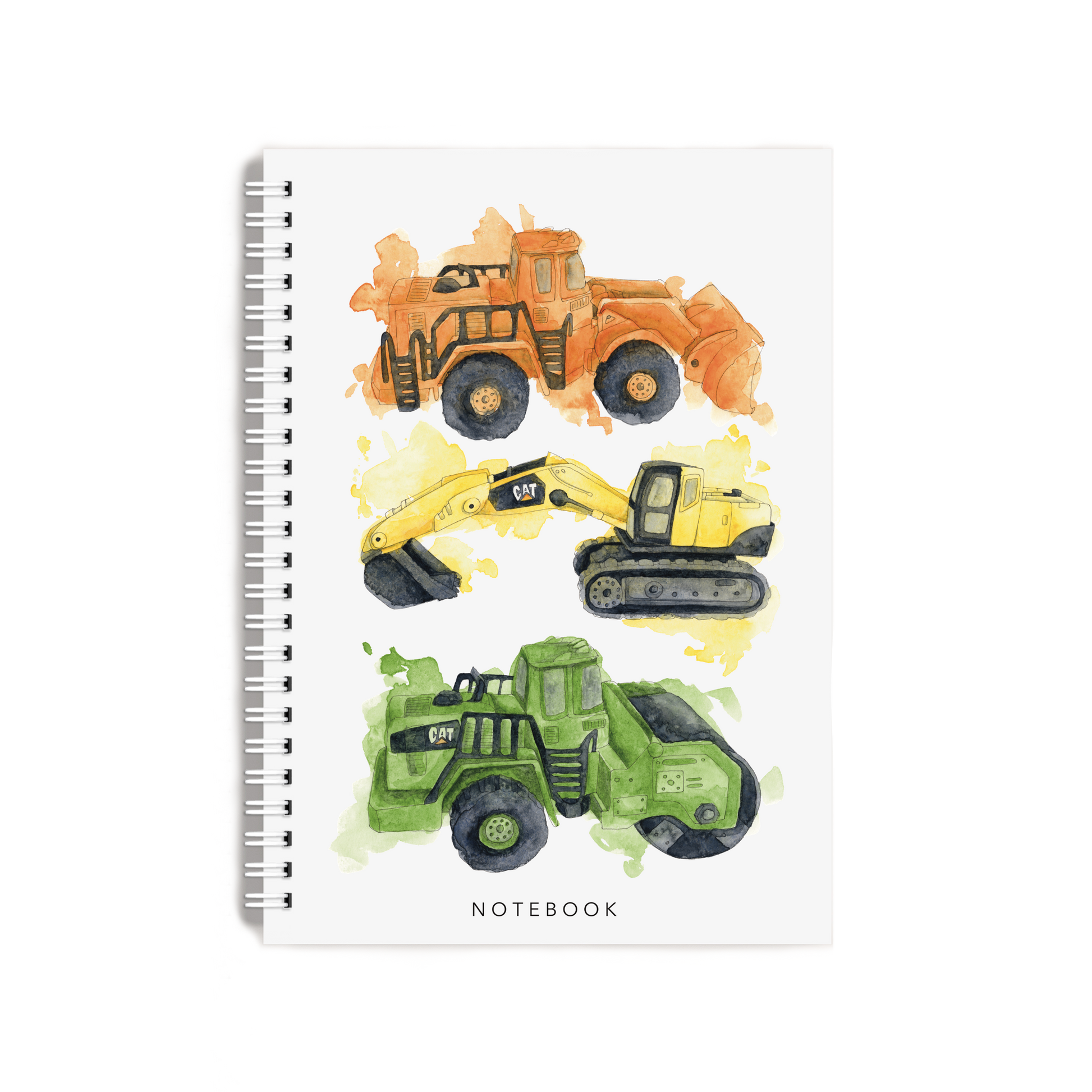 A 30-page notebook featuring the "Construction Vehicles" illustration. Customise by choosing either plain lined or illustrated and personalising the cover.