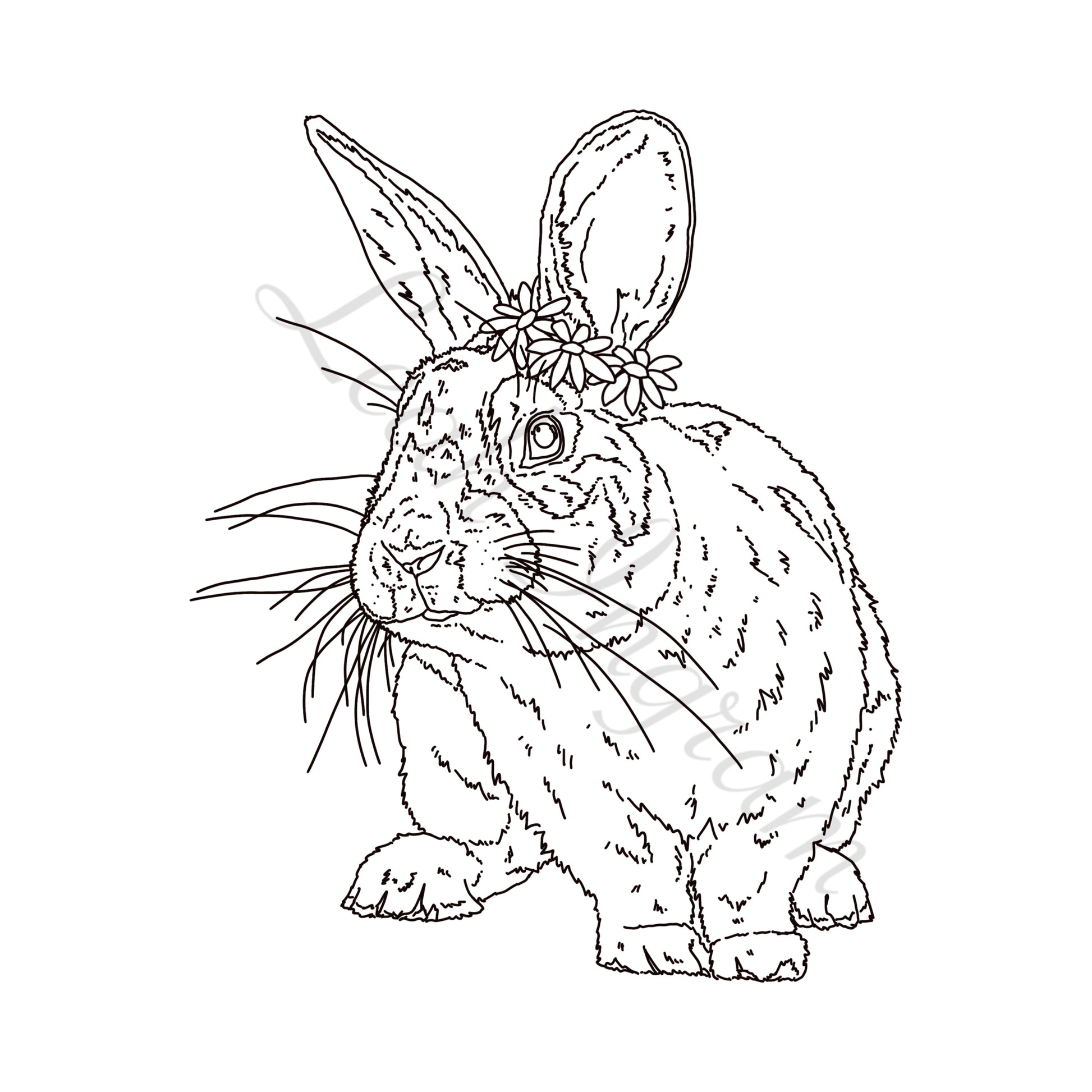 You will receive a PDF file of the "Daisy Rabbit" line art (without the watermark) to print as many times as you like from your home printer, or local print shop. This is for personal use only and is not to be onsold.