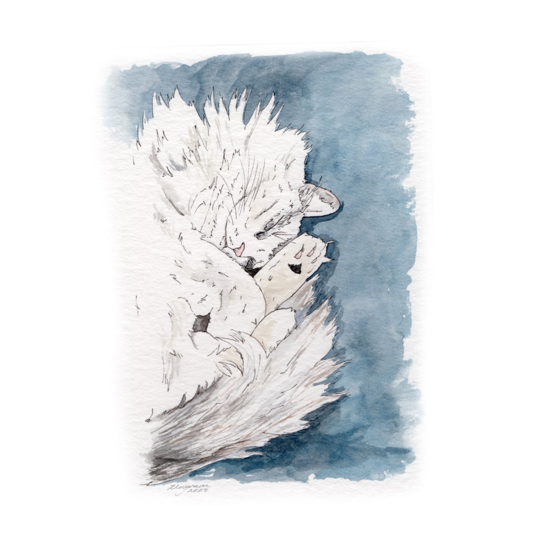 - An original artwork illustrated with professional watercolour paint and ink on 300gsm watercolour paper. Each artwork is sprayed with a protective matt adhesive to increase longevity and reduce the risk of damage to the painted area.