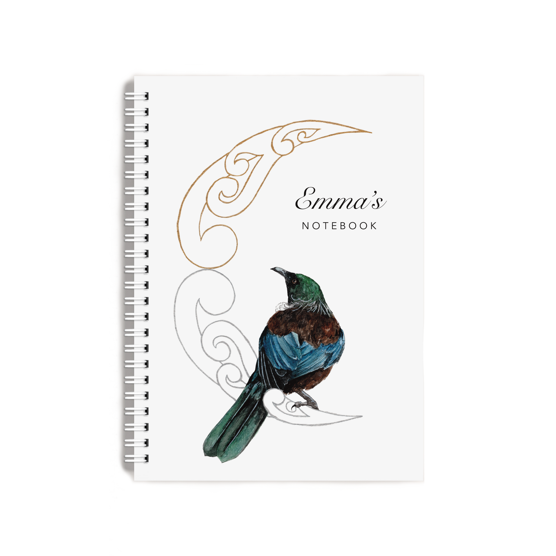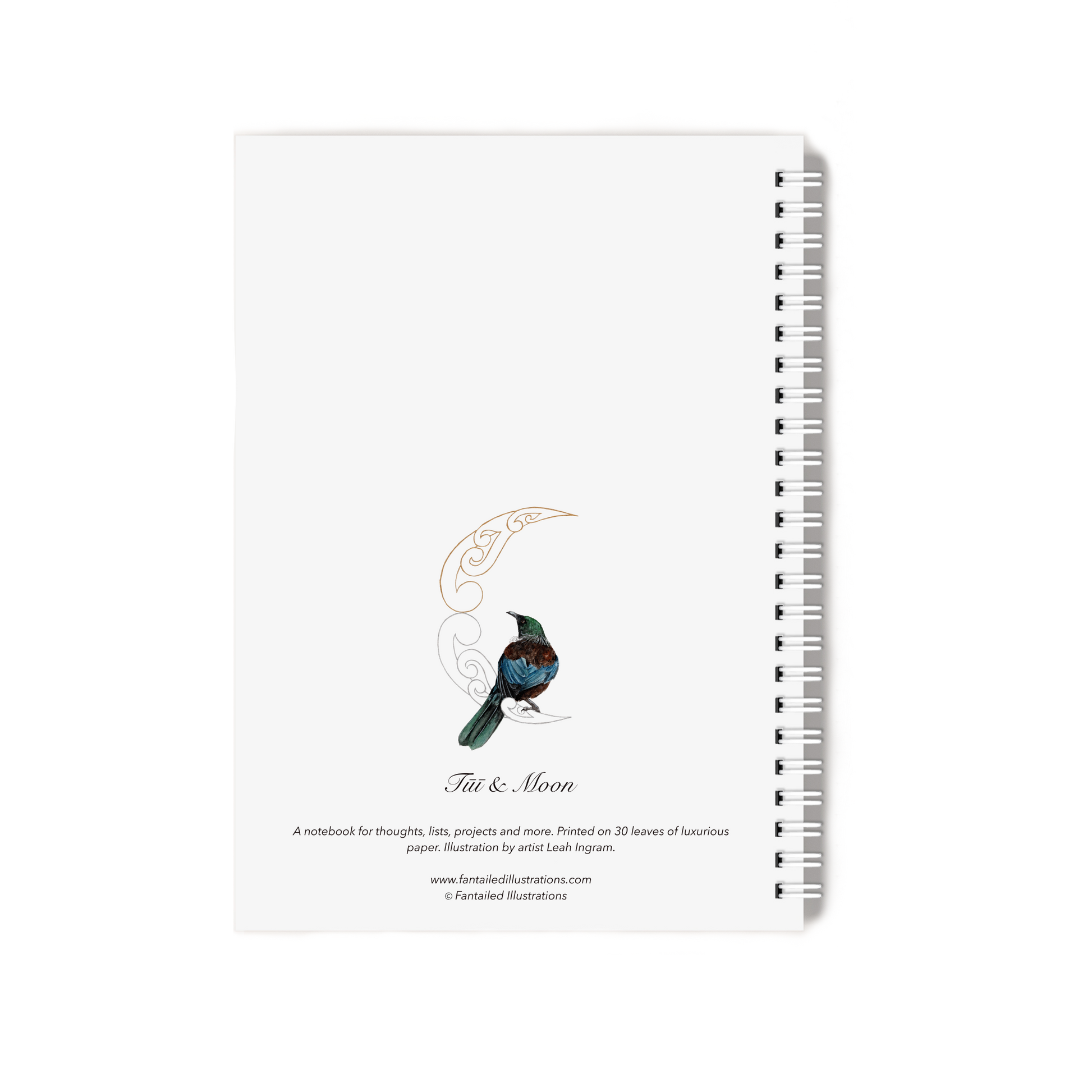 A 30-page notebook featuring the "Tūī & Moon" illustration by artist Leah Ingram. Customise by choosing either plain lined or illustrated and personalising the cover.