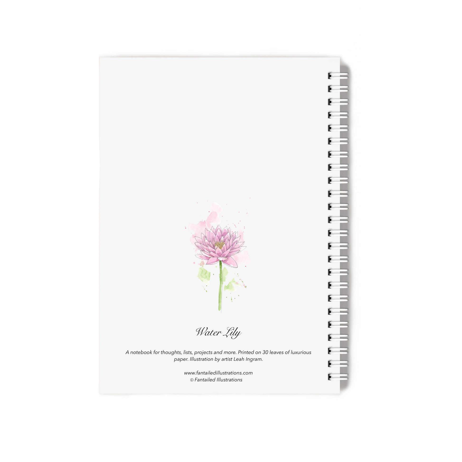 A 30-page notebook featuring the "Water Lily" illustration by artist Leah Ingram. Customise by choosing either plain lined or illustrated and personalising the cover.